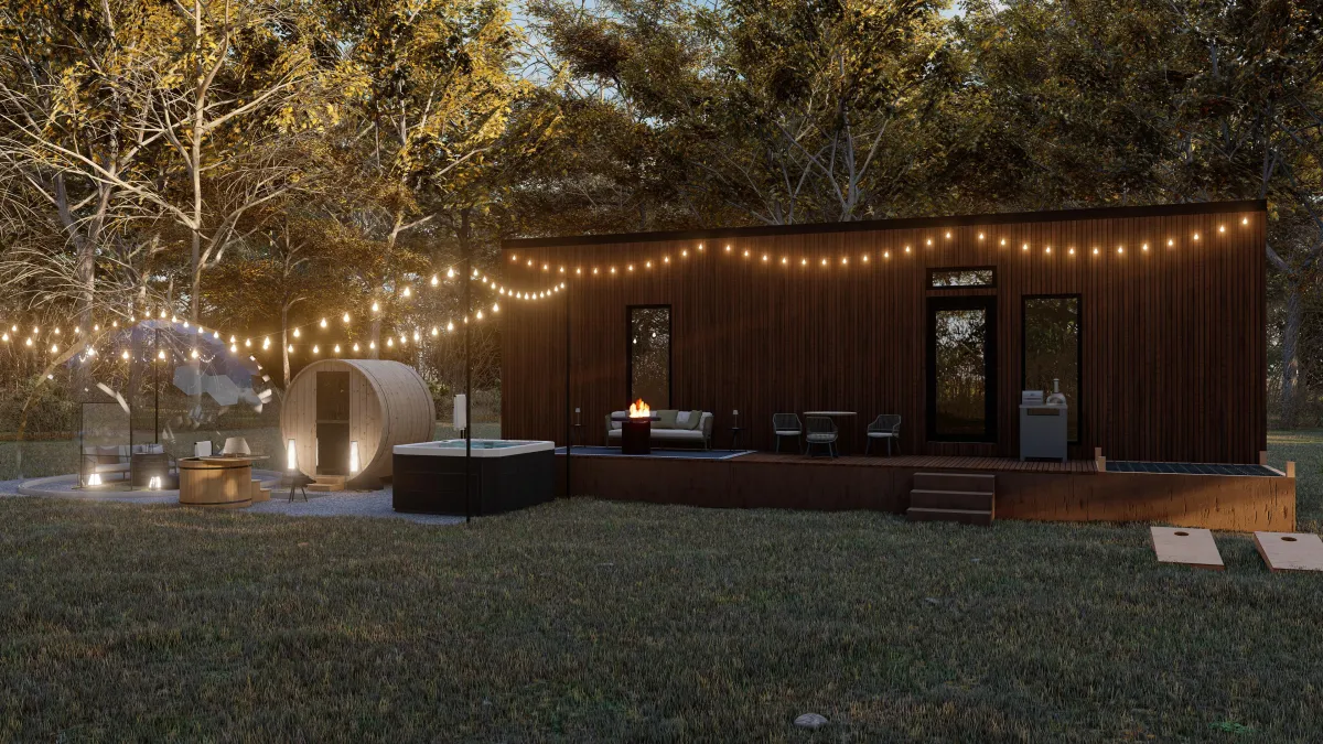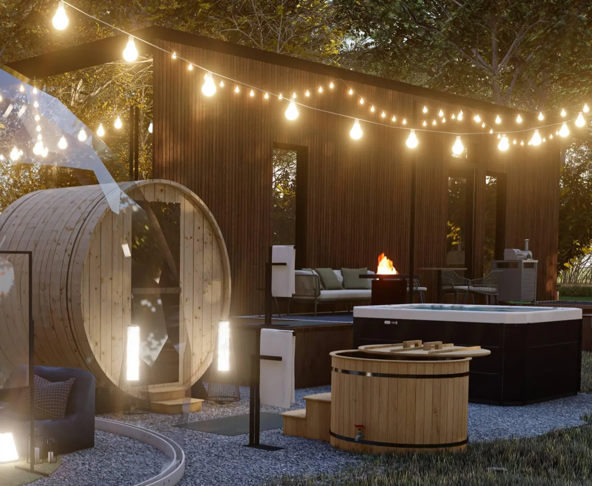 Relax & recharge with your own personal wellness spa experience -- including an outdoor hot tub, barrel sauna, & cold plunge -- surrounded by nature.